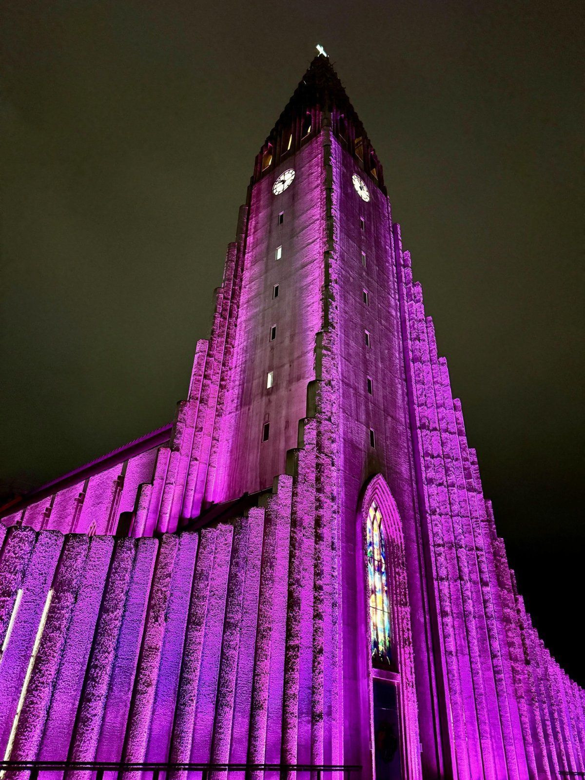 Hallgrímskirkja í bleikum ljóma í október