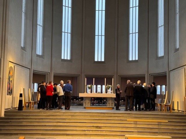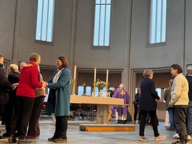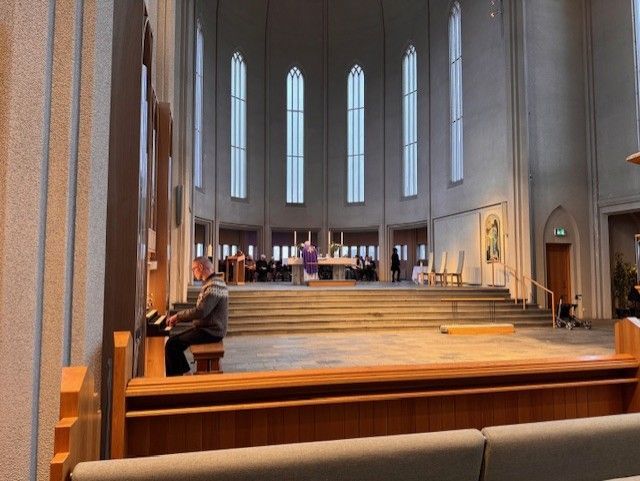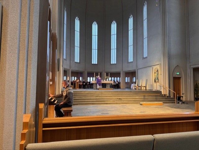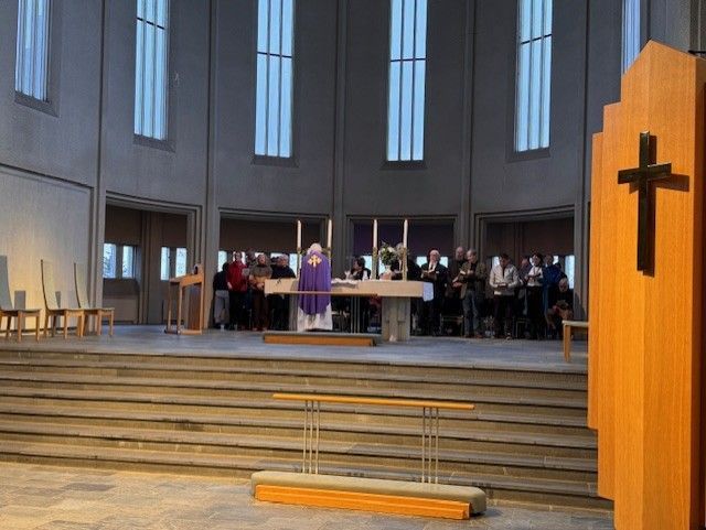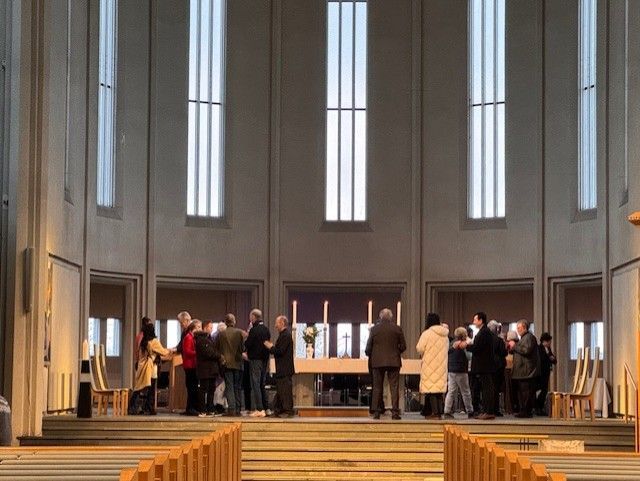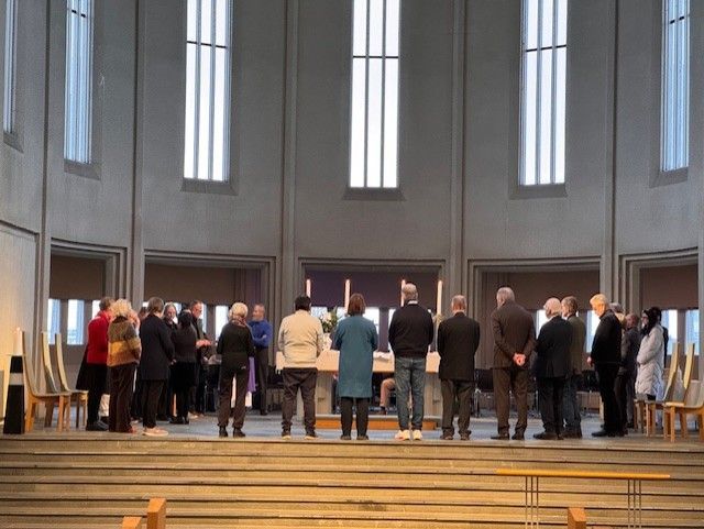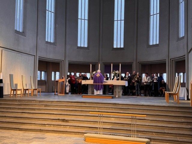 Um þrjátíu manns voru í morgunmessu í kór kirkjunnar. Þar var ekki aðeins gengið til altaris heldur voru þau sem vildu signd með öskukrossi. Öskukrossinn er tákn iðrunar og minnir á fagnaðarerindið um Jesú Krist.